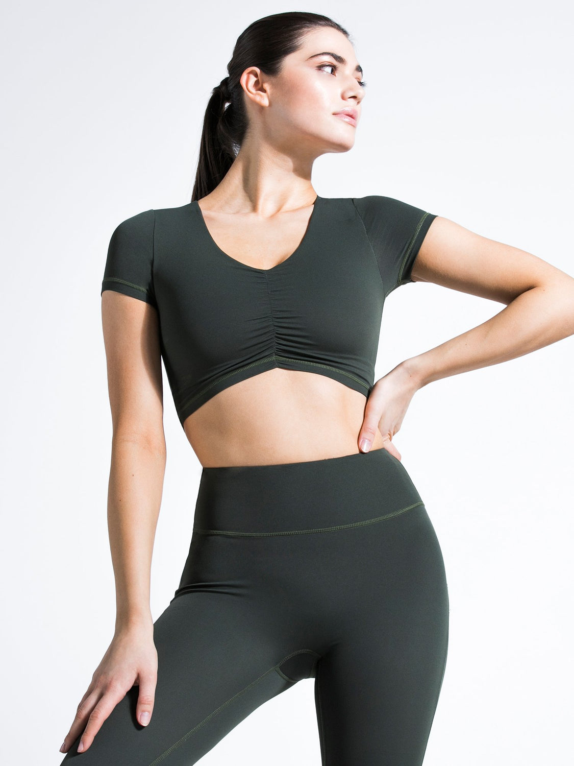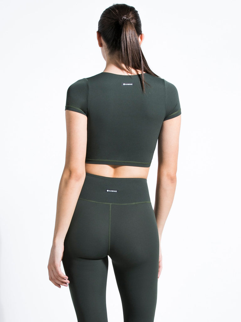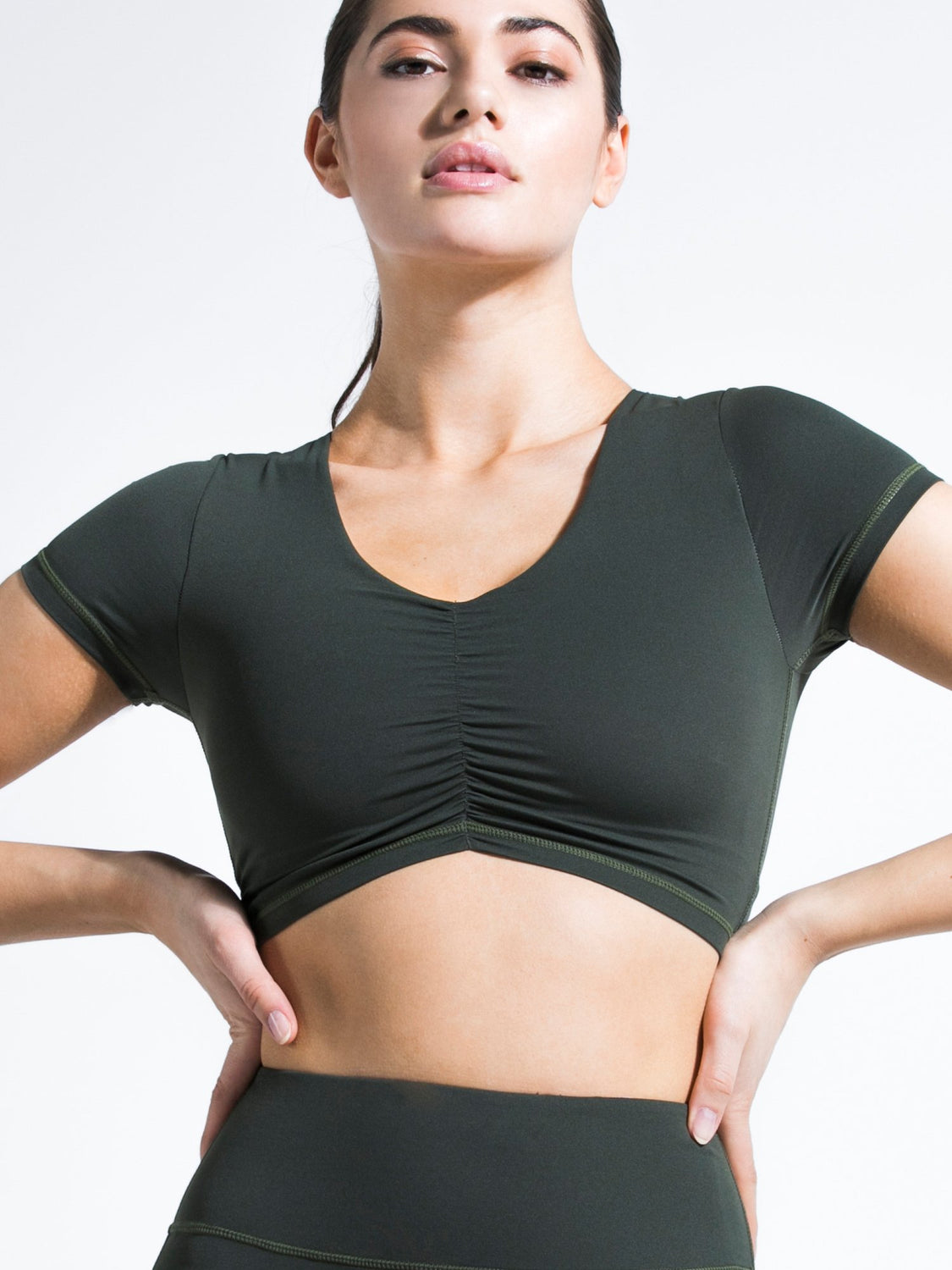 RUCHED NUDE TEE, DEEP FOREST
